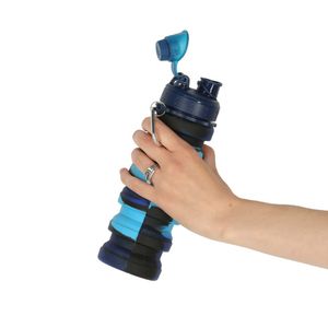 Butelka na wodę bidon silikonowy składany z uchwytem BPA FREE 500ml niebieski