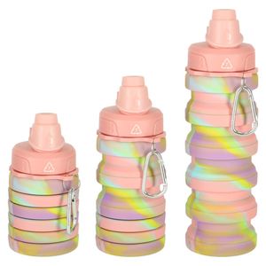 Butelka na wodę bidon silikonowy składany z uchwytem BPA FREE 500ml tęczowy