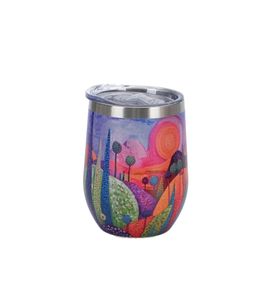 Kubek termiczny BUBBLY HILLS wchodzący w skład serii MODERN, wykonany ze stali nierdzewnej 18/8, doskonały do zimnych i ciepłych napojów zabieranych do pracy, szkoły czy na podróż.Linia zdobiona nowoczesnym i artystycznym wzorem malowniczego pejzażu falujących wzgórz, pełnych życia i ekspresji. Intensywna paleta kolorów - od głębokich fioletów i różów w tle, przez intensywne pomarańcze i żółcie, aż po soczystą zieleń i spokojny błękit w pierwszym planie, tworzy harmonijną kompozycję. Wzór łączy w sobie tradycyjne rzemiosło z nowoczesnym designem o niezwykle świeżym charakterze.Produkt zapakowany w ozdobne pudełko z tym samym motywem, co czyni go doskonałym pomysłem na prezent dla bliskiej osoby, miłośnika piękna i wysmakowanych detali. Idealny na każdą okazję oraz jako niebanalna pamiątka. Nasza wyjątkowa kolekcja MODERN przenosi w bajkowy świat pełen marzeń, magii oraz niczym nieskrępowanej wyobraźni.Materiałstal nierdzewna 18/8Pojemność maksymalna330 mlŚrednica7,8 cmWysokość11,5 cmSzerokość z uchem8,9 cmZastosowanieZmywarkaNieMikrofalówkaNie GiftboxSzerokość pudełka9 cmDługość pudełka9 cmWysokość pudełka13 cmRodzaj opakowaniacolorbox